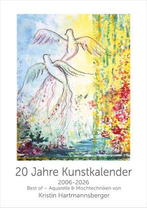 Zum Jubiläum gibt es 13 beliebte Motive aus 20 Jahren Kunstkalender in A4 oder A3, mit Aquarell und Mischtechnik von Kristin Hartmannsberger. Bilder, die Herz und Horizont erweitern, gut tun und inspirieren.
